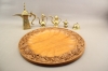 16. Bricka i teak, kannor 4 st och klocka i mässing